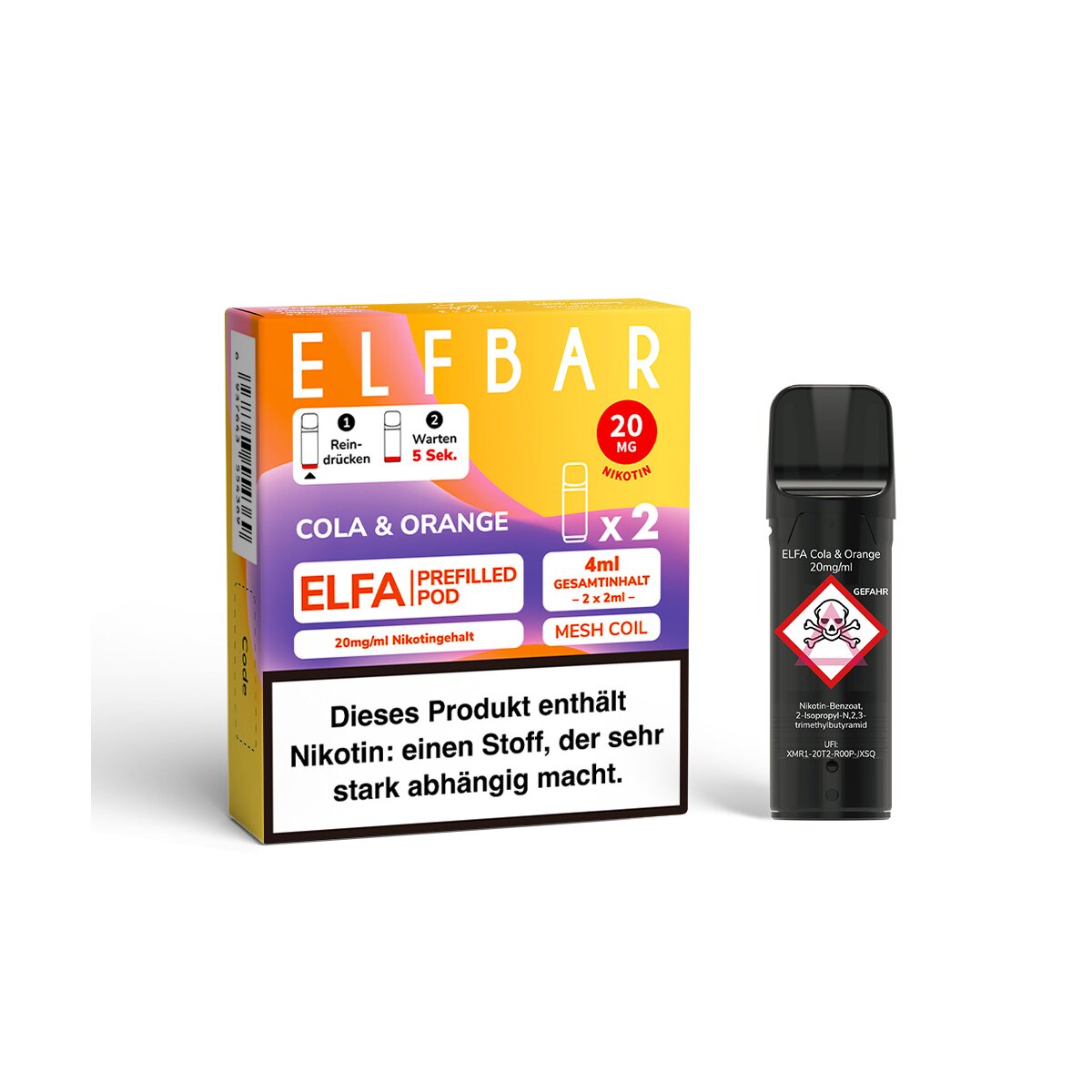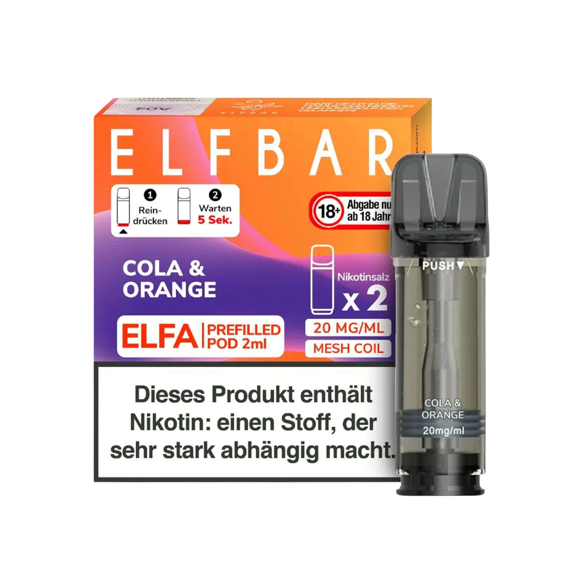 Lust auf eine spritzige Erfrischung? Die ELFBAR ELFA Prefilled Pods in der beliebten Sorte Cola & Orange sind die perfekte Wahl für alle, die den klassischen Geschmack eines belebenden Cola-Mixgetränks lieben. Diese Sorte kombiniert zwei der beliebtesten Aromen der Welt zu einem harmonischen und unglaublich leckeren Dampferlebnis, das an sonnige Tage und pure Erfrischung erinnert.