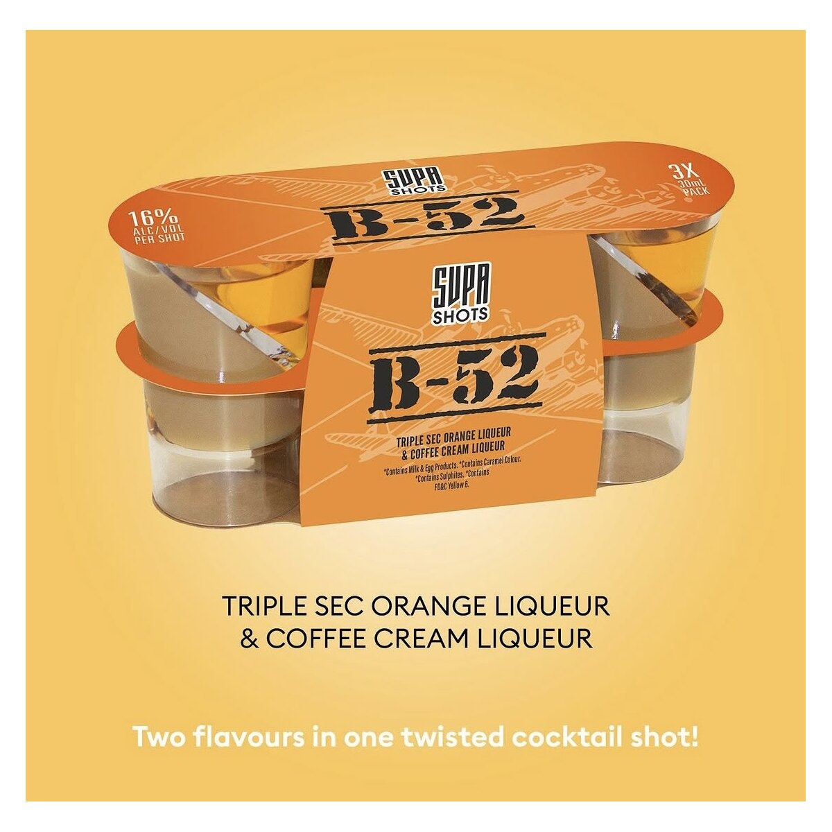 Die Supa Shots - B52 3x30ml | 16% alc. sind ideal für alle, die handliche Shot-Größen mit charaktervollem Profil und unkompliziertem Genuss bevorzugen.